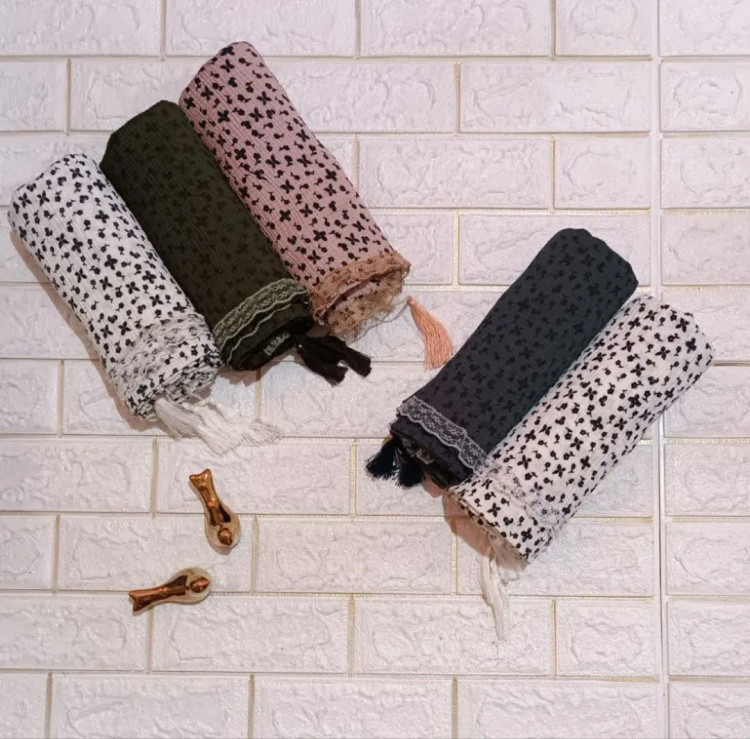 شال نخ درختی چاپی منگوله و دور توری قوار 90200